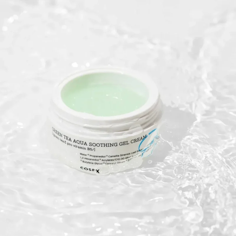 Niiskusest pakatav, kiiresti imenduv geelkreem, mis rahustab ja värskendab hetkega. COSRX Hydrium Green Tea Aqua Soothing Gel Cream ühendab rohelise tee, aaloe ja pantenooli jõu, et leevendada ärritust ning taastada naha tasakaal.