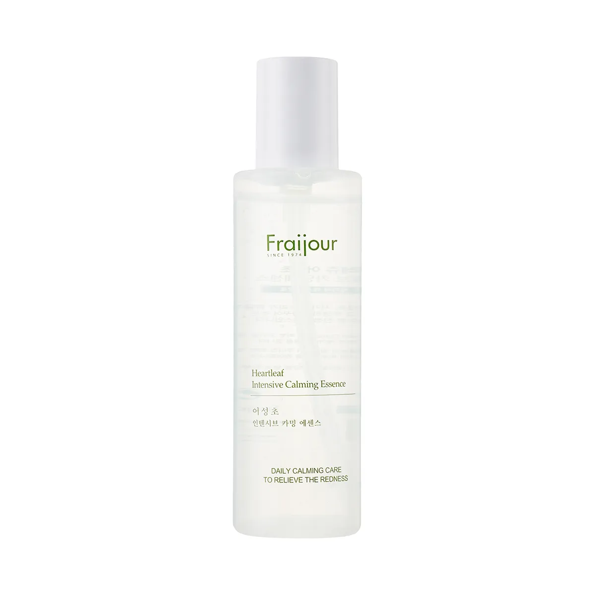 FRAIJOUR Heartleaf Intensive Calming Essence ühendab selle taimse rahustaja naha niiskust säilitavate komponentidega. Kerge, kiiresti imenduv essentsi tekstuur jätab puhta, nahka mitmekoormava kihi. Aluseks on kõrge kontsentratsiooniga heartleaf ekstrakt, mis toimib nii antioksüdandina kui ka õrna rasutasakaalu modulaatorina. Seda seostatakse teaduslike uuringutega IL-6 ja IL-8 signaalide pärssimisega ning antimikroobse toimega naha ebatasasusi esilekutsuvate mikroorganismide vastu. Seega rahustab see nahka, kuid ei pidurda selle normaalseid funktsioone.